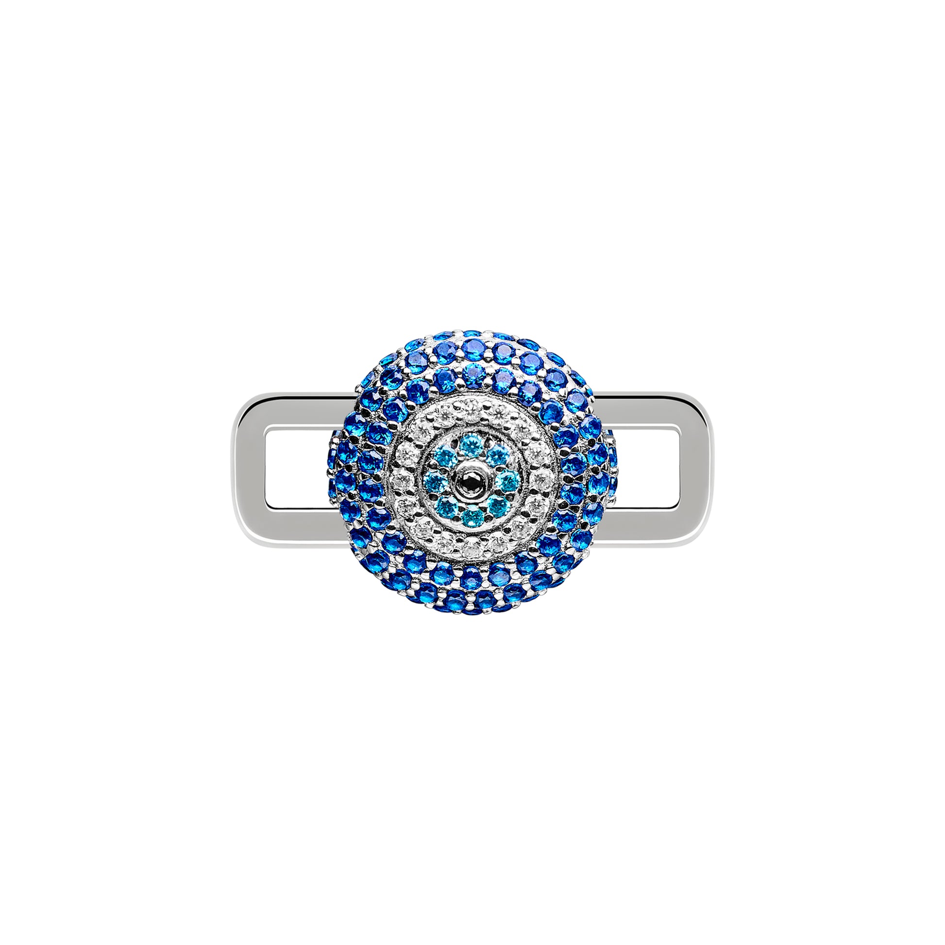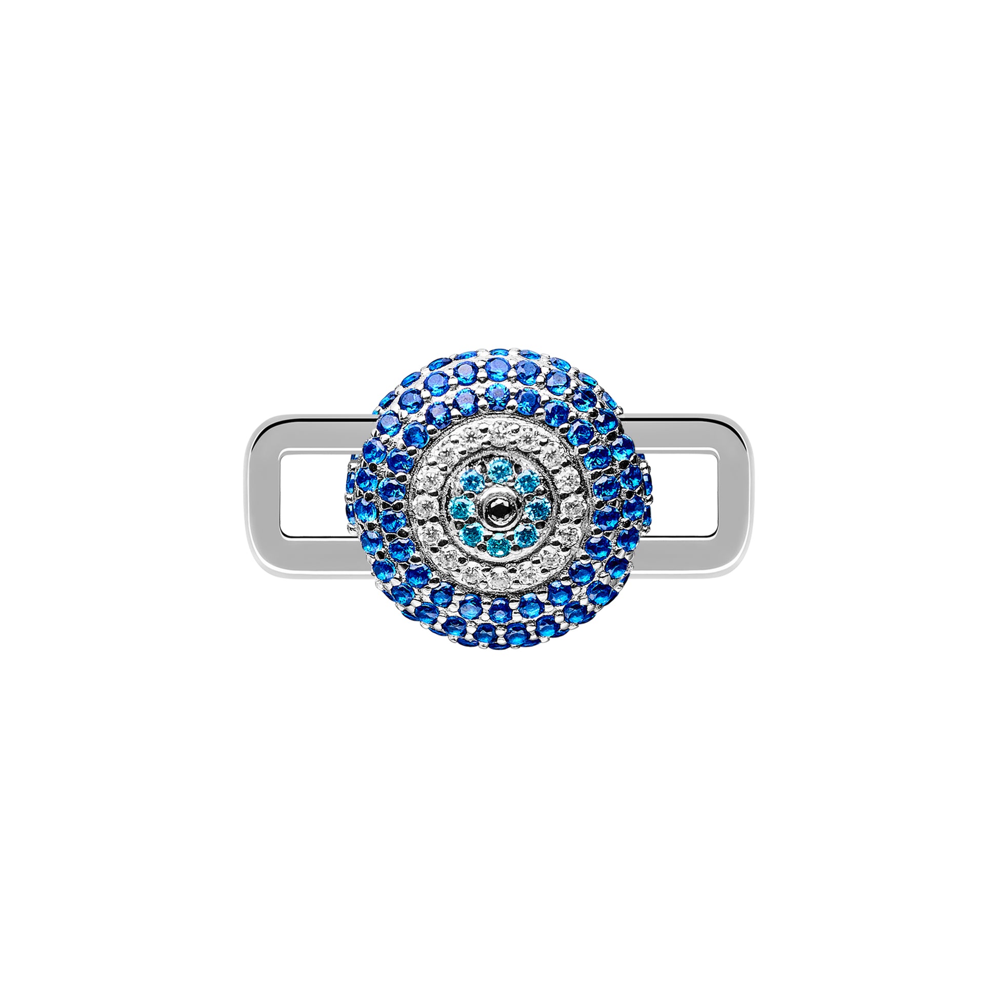 Crafted from rhodium-plated, recycled 925 sterling silver, the Poubel Stoneset Evil Eye Charm features a combination of hand-set moissanite and high grade cubic zirconia stones in a pavé setting for a radiant, refined sparkle.