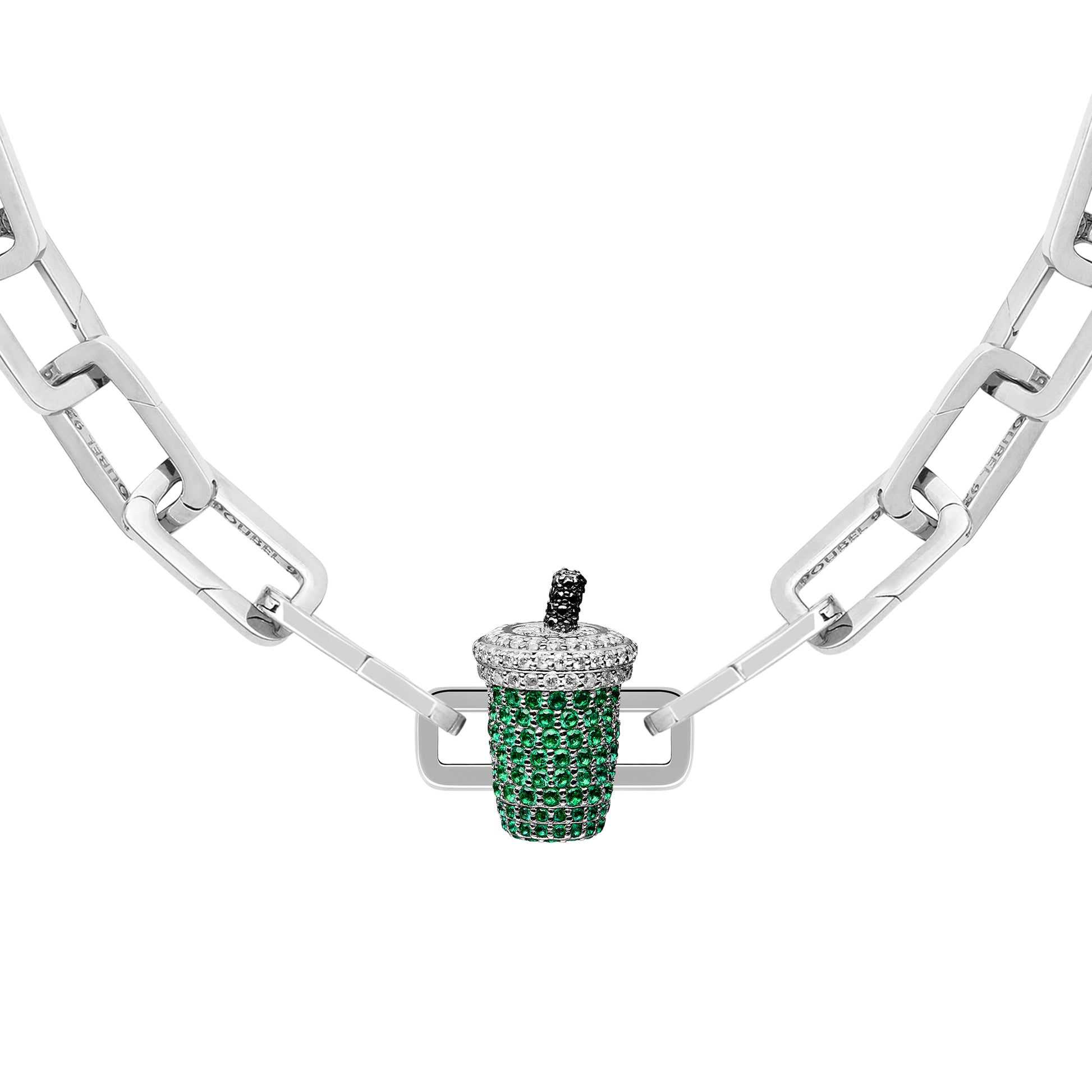 Crafted from rhodium-plated, recycled 925 sterling silver, the Poubel Stoneset Iced Matcha Charm features a combination of hand-set moissanite and high grade cubic zirconia stones in a pavé setting for a radiant, refined sparkle.